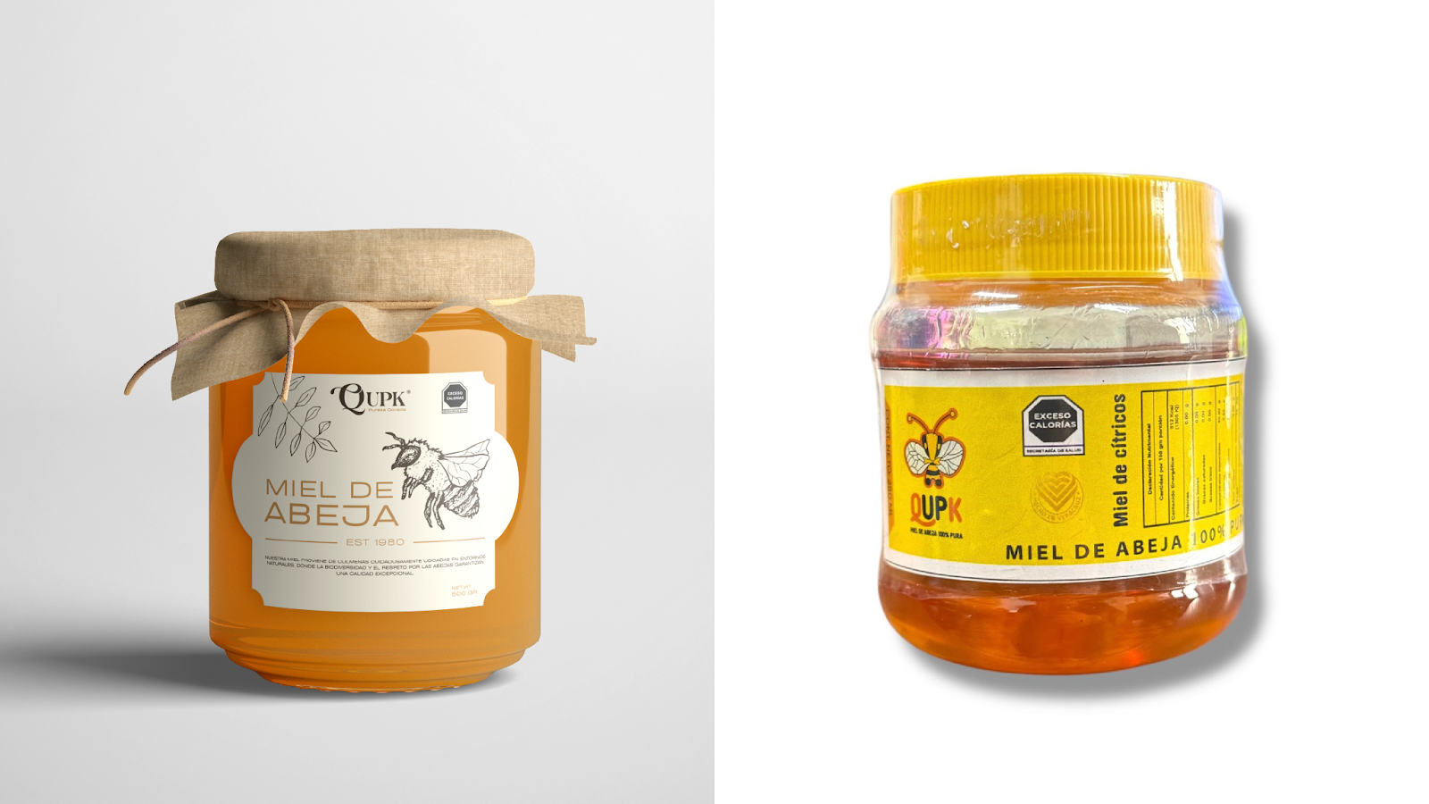 En la imagen vemos dos enfoques completamente distintos para el mismo producto: miel de abeja.
